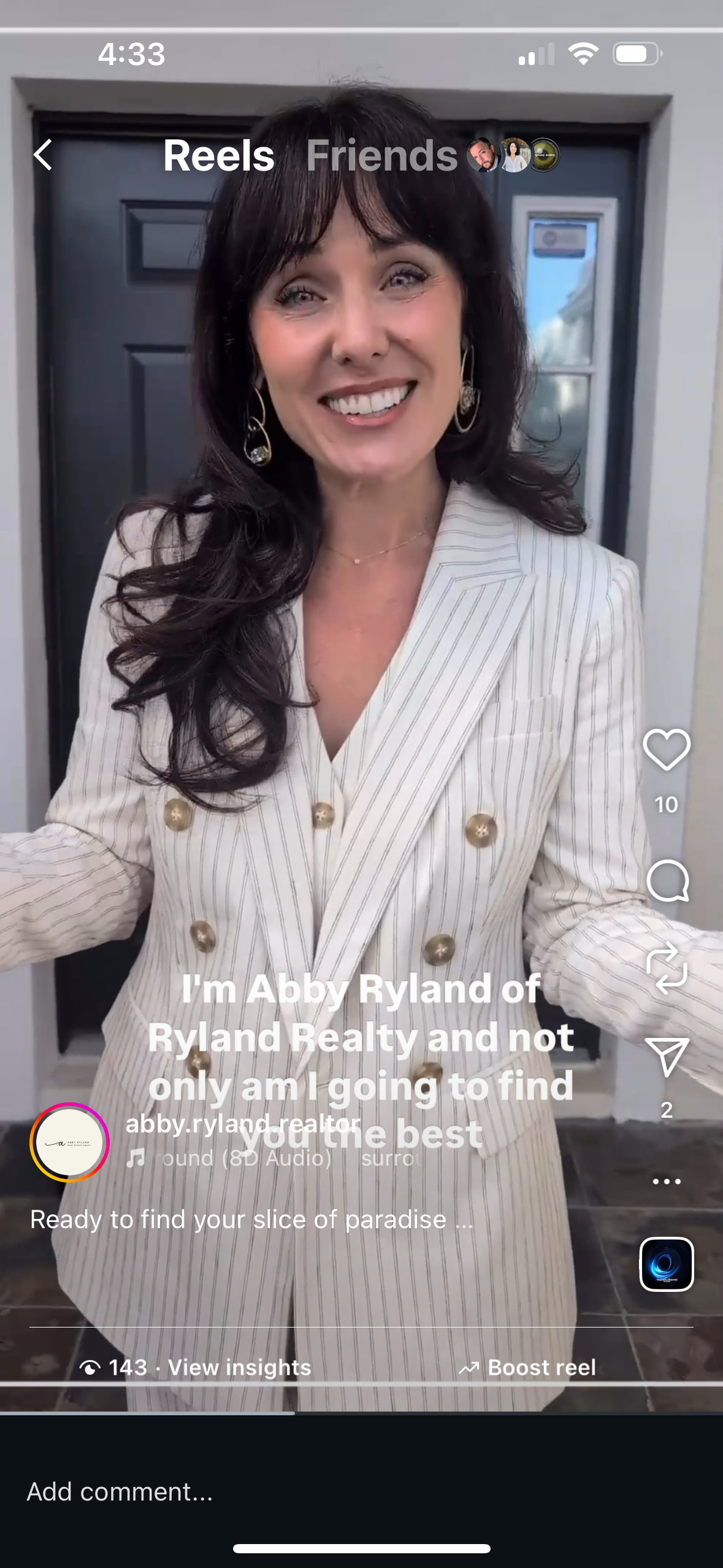 We’re building audience before the film screens. Platform-specific vertical content expands the Halpate world without revealing plot: atmospheric stills, process updates, and side-character narratives like Abby Ryland Realtor, whose cheerful suburban sales pitches reveal the scenes between the scenes in the Halpate narrative.